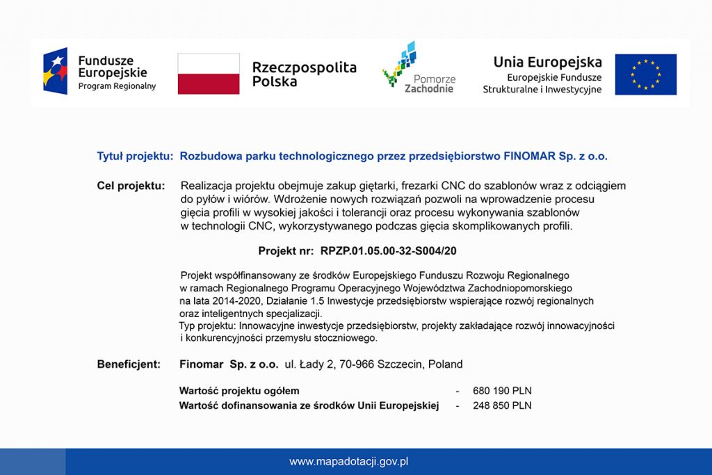 Realizacja projektu obejmuje zakup giętarki, frezarki CNC do szablonów wraz z odciągiem do pyłów i wiórów. Wdrożenie nowych rozwiązań