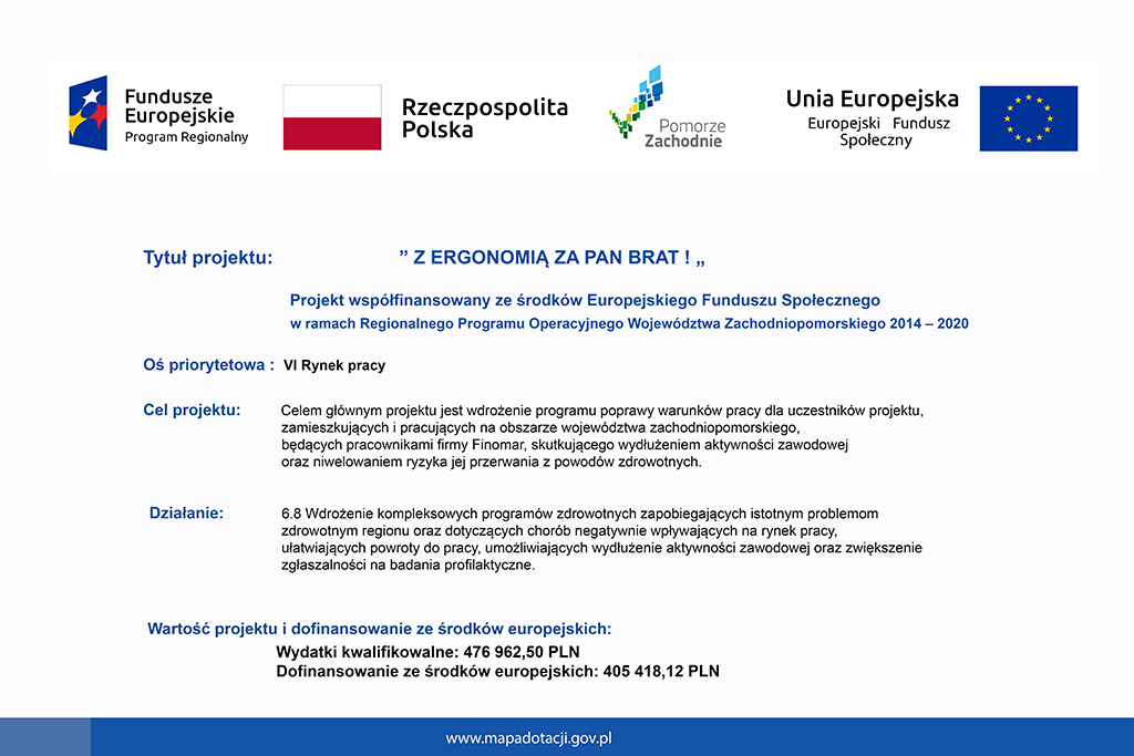 Wartość projektu ogółem wynosi 75 964,80 zł, w tym wartość dofinansowania ze środków Funduszu Ubezpieczeń Społecznych wynosi 50 000,00 zł